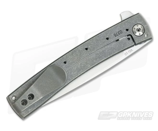 The Blade:Â Wide drop point style with distinctive tip and crowned spine. The VG-10 premium steel is razor sharp and horizontally satin finished for a custom look. Right about 2.75 inches of cutting edge on the FR with integral flipper opener. The flipper tab has welcomed notching and is easy to use. Simply pull down/press in the tab and the blade shoots right out of the handle. It glides along on a smooth as glass ball bearings pivot system. Mr. Brad Zinker’s logo can be found on the back of the blade.