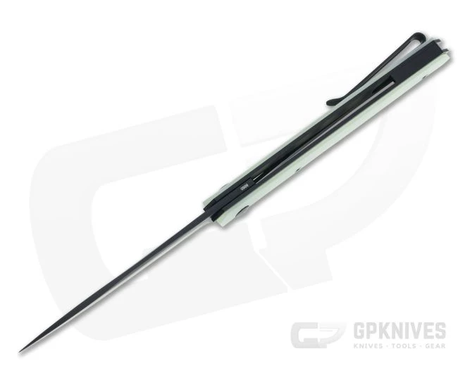 Handle: Proud stainless liners support contoured, smooth jade G10 handle scales for a slim, lightweight and ergonomic handle design that is surprisingly secure thanks to the distal taper design. The rear liner forms the locking mechanism which is smooth, reliable, and secure in operation.