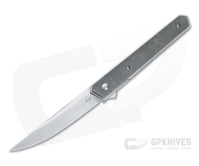 Designed by custom maker Lucas Burnley, the Kwaiken legacy continues with the Boker Plus Kwaiken Air delivering this iconic design in a more slimmed down, lightweight carry platform with the same great style and performance. This version comes with a hand rubbed satin VG10 stainless steel blade, stainless steel liners and stonewashed titanium handle scales.