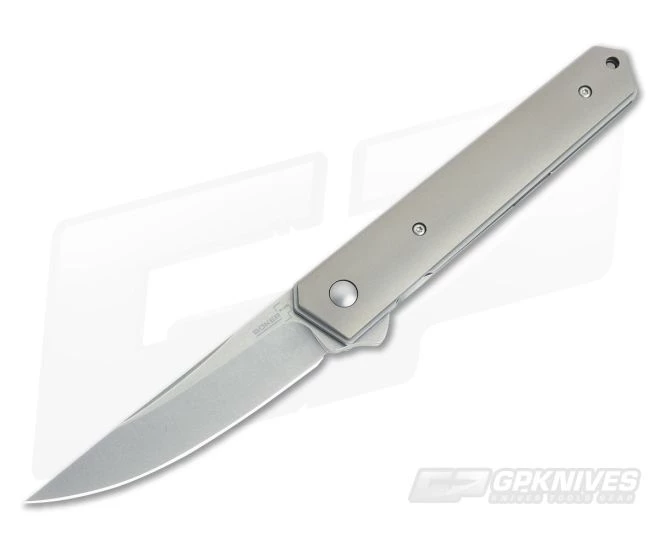 Boker Plus Kwaiken Titanium Flipper with tumbled VG-10 stainless steel is an evolution of the original Lucas Burnley design. Full stainless steel frame with Titanium overlays. The slim design features a wicked sharp VG-10 stainless steel blade that deploys via flipper in a flash with the IKBS bearing system. Smooth bead-blasted titanium handle scales provide sleek styling with a handy tip-up carry pocket clip. Brand new direct from Boker Knives.