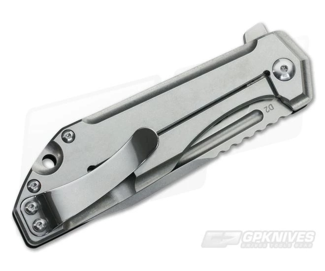 The Handle:Â Fully stonewashed steel frame lock side plus black G10 front on the Lateralus that’s quite comfortable and well balanced to the blade. This one’s a bit lighter than the all-steel version. It does have milled lightening pockets on the inside of the steel as well as grooves on the outside for accent and grip. This is a nice, clean open standoffs design with lanyard hole and solid lockup. Included for carry is a tip up polished pocket clip.
