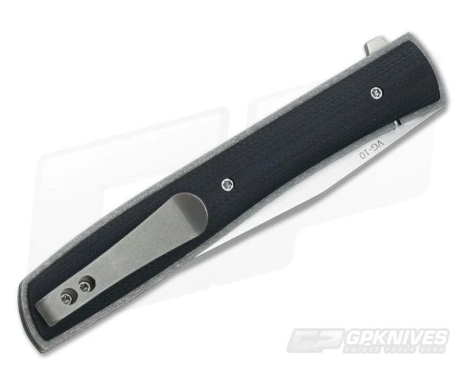 Boker Plus Urban Trapper G10 flipper is one of the slimmest frame locks on the market. Created by innovative knife maker Brad Zinker from Florida to be carried in a suit pocket or dress pants. Super smooth IKBS bearing pivot system reduces blade play yet still allows for quick blade deployment. Classic clip point blade is made from satin VG-10 steel and is easily opened with the flipper. Lightweight titanium frame comes with black G10 scales for an attractive look and feel. Includes a titanium pocket clip for tip up carry. Brand new direct from Boker Knives.