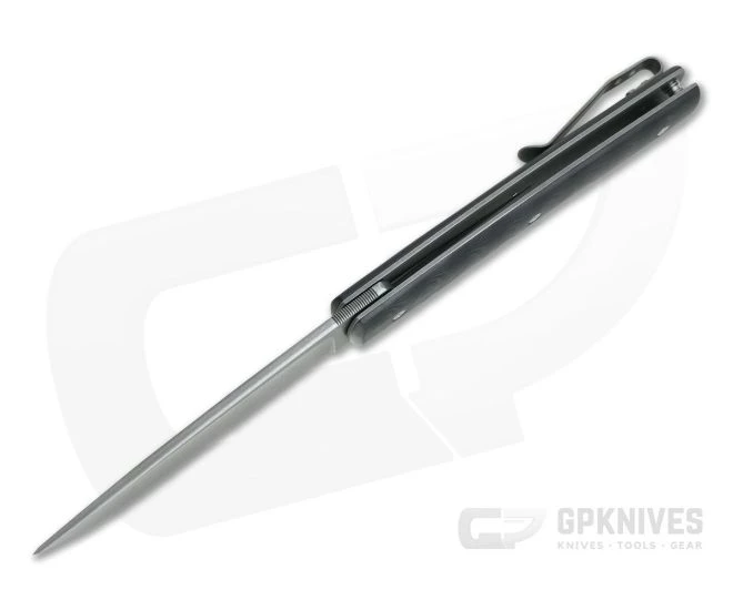 The Custom Brad Zinker FR Stretch LLF is a long, slim, ultralight liner lock flipper with hand made, precision fit and finish and premium, high performance materials. This Stretch version of the FR LLF comes with an acid stonewashed CPM-154 Drop Point blade, matching titanium liners and clip and striking, Uni Black FatCarbon handle scales.