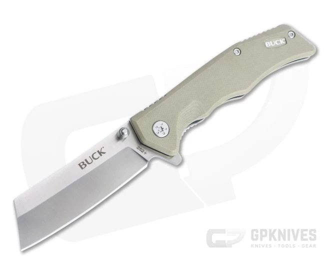 Buck is getting into the cleaver game with the 252 Trunk. The first Buck to sport this popular blade profile, the Trunk has a stout cleaver style blade paired with rugged stainless steel liner construction and G10 handle scales. Thumb stud or flipper deployment makes this a versatile utility cutting tool for daily carry. This version comes with tan G10 handle scales. Backed by the Buck Forever Warranty.