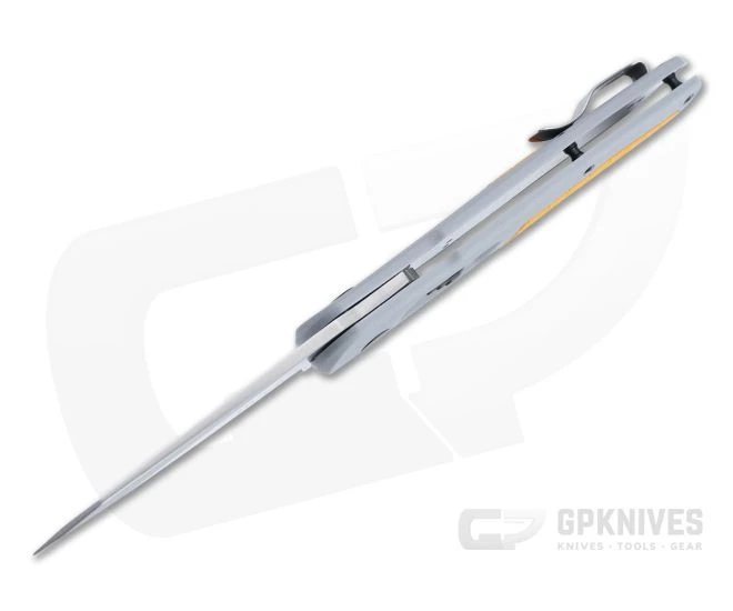 Handle: Gray and orange polypropylene polymer scales supported by steel liners make the handle solid, durable, and weather resistant. A textured inlay pairs with a generous index choil for a safe, secure grip. The SUR button lock mechanism provides rock solid lock up open or closed.