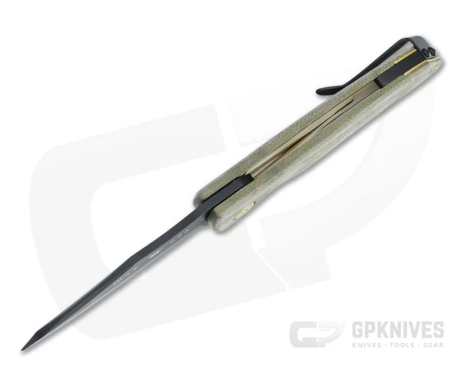 Handle: Inset gold titanium nitride coated steel liners support the high traction canvas Micarta scales for a solid, comfortable grip. Subtle curves and a prominent index choil deliver security in hand with the liner lock providing smooth operation and solid lockup for safe use. Matching gold hardware complements the handle with subtle style.