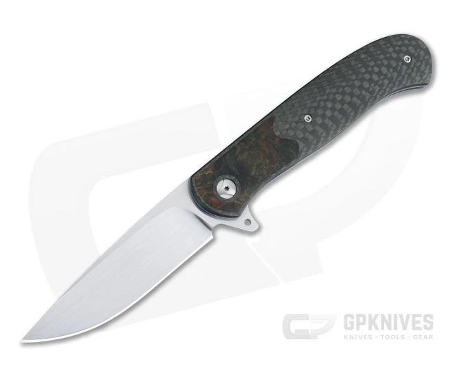 The Atlas Plus is a beautiful, custom creation from South African knife maker Trevor Burger. This gentlemanly knife is perfect for everyday carry and, while simple and utilitarian in design, is sure to catch some eyes with its Dyed Maple Burl inlaid Carbon Fiber handle scales and hand rubbed satin M390 blade. A jewel for your collection or a great, high-end EDC.