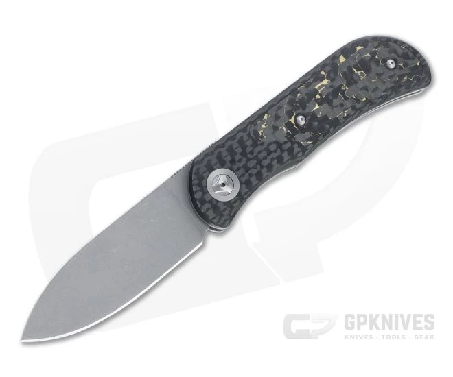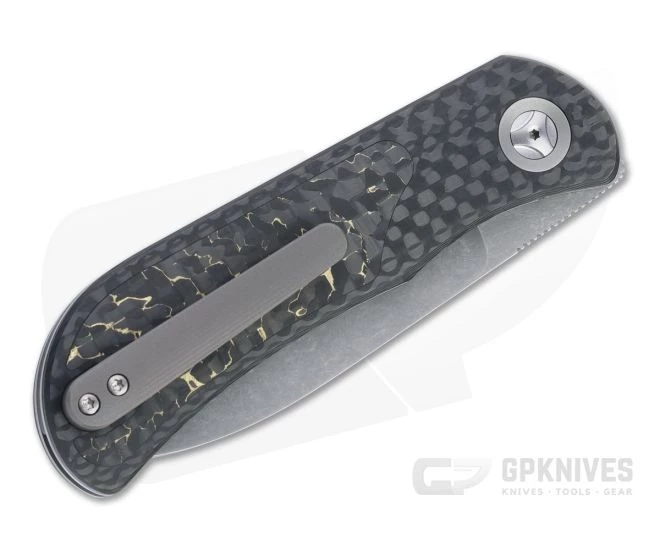 Handle:Â Thick titanium liners support the solid, lightweight Low Void Aerospace (LVA) carbon fiber scales. Smooth carbon fiber has a stylish look for dress carry elevated by the striking Snakeskin Gold Fatcarbon inlays, custom pivot and pivot collars. One liner forms the simple liner lock mechanism with silky ceramic detent, delivering smooth operation and solid lockup for safe use. Includes nylon zip pouch and Certificate of Origin.
