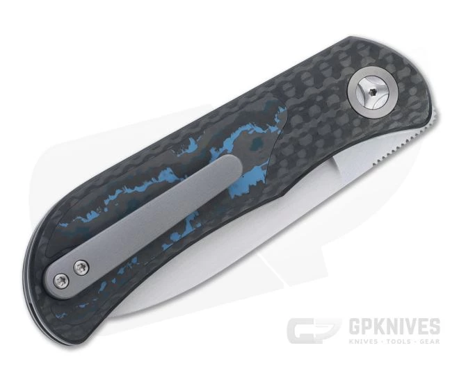 Handle:Â Thick titanium liners support the solid, lightweight Low Void Aerospace (LVA) carbon fiber scales. Smooth carbon fiber has a stylish look for dress carry elevated by the striking Arctic Storm Fatcarbon inlays, custom pivot and pivot collars. One liner forms the simple liner lock mechanism with silky ceramic detent, delivering smooth operation and solid lockup for safe use. Includes nylon zip pouch and Certificate of Origin.