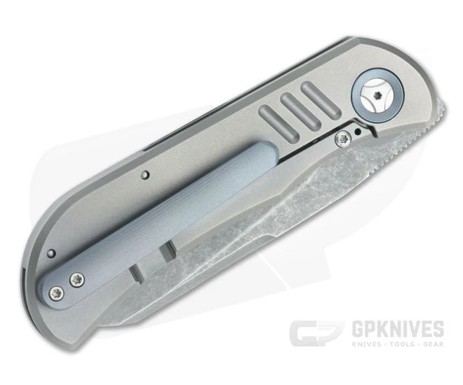 Handle:Â Full titanium construction makes the SFL a more rugged folder while the blue anodized pivot collars, floating back spacer and pocket clip add a touch of color giving it a classy look. The handle slabs are lightly contoured and are bead blasted for a matte gray finish and subtle texture. The integral titanium frame lock with hardened steel lock face insert delivers smooth operation, rock solid lockup and secure operation for the life of the knife. Ships in a zippered nylon pouch with Certificate of Authenticity.