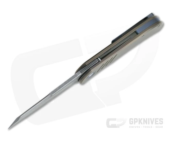 Handle: The rugged integral titanium Slab Frame Lock is equipped with a hardened steel lock face insert for smooth operation, rock solid lockup and secure operation for the life of the knife. Blue anodized pivot collars, floating back spacer and pocket clip add a touch of color giving it a classy look. The handle slabs are lightly contoured and are bead blasted for a matte finish and subtle texture and bronze anodized. Ships in a zippered nylon pouch with Certificate of Authenticity.