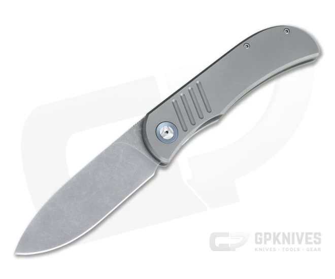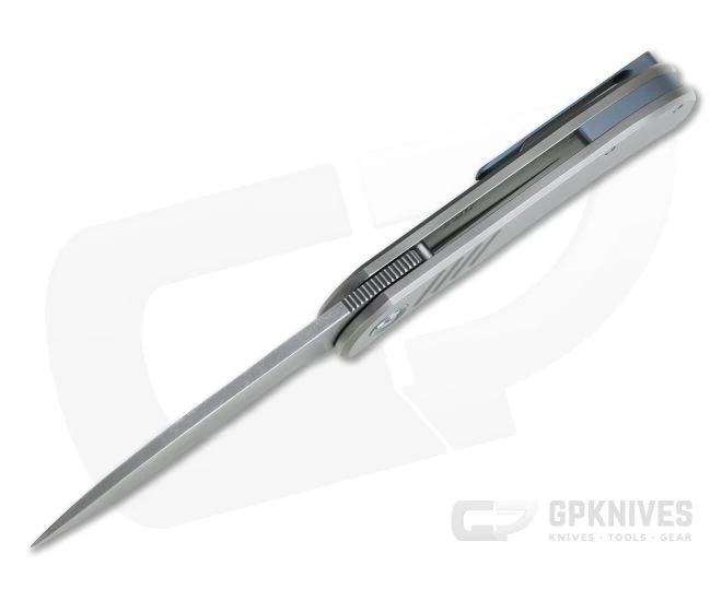 Handle: The rugged integral titanium Slab Frame Lock is equipped with a hardened steel lock face insert for smooth operation, rock solid lockup and secure operation for the life of the knife. Blue anodized pivot collars, floating back spacer and pocket clip add a touch of color giving it a classy look. The handle slabs are lightly contoured and are bead blasted for a matte gray finish and subtle texture. Ships in a zippered nylon pouch with Certificate of Authenticity.