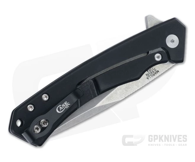 Part of the new Modern Everyday Carry line from Case Knives, the Marilla steps into the arena of contemporary EDC folders, offering ball bearing pivot flipper deployment and one hand operation frame lock construction. The drop point blade comes in high performance CPM-S35VN stainless steel, and the lightweight aluminum handle comes equipped with a high traction G10 inlay for a secure grip. This version comes with a stonewash finished blade and black anodized aluminum handle.