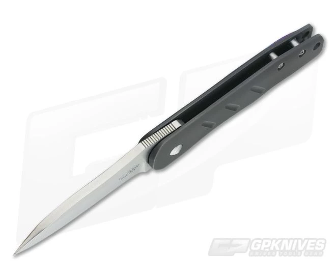 The Blade: Modified sheepsfoot with high flat grind made from CTS-XHP stainless steel. Features a faux top edge and hand-rubbed horizontal finishing. Â The detent has been dialed in to a medium-strong offering a smooth ride with each deployment when combined with caged ceramic ball bearings and easy access flipper tab.