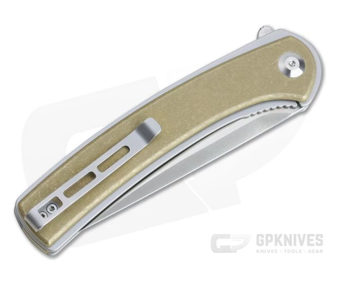 Slim and refined the CIVIVI Asticus offers big knife performance with a compact, lightweight carry. The fast, flipper deploying blade delivers over 3.5 inches of razor sharp, hollow ground cutting edge while proud stainless liners support flat scales for a more contoured feel in the hand while still carrying slim in the pocket. This version comes with stonewashed brass handle scales, stainless steel liners and a satin finished, hollow ground, D2 tool steel blade.