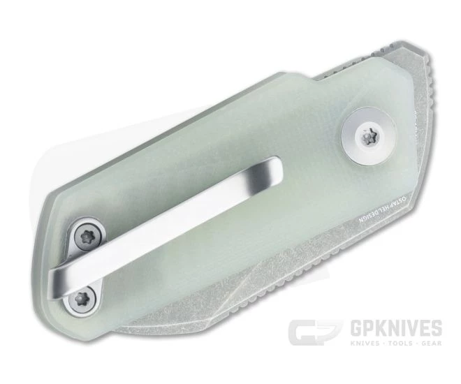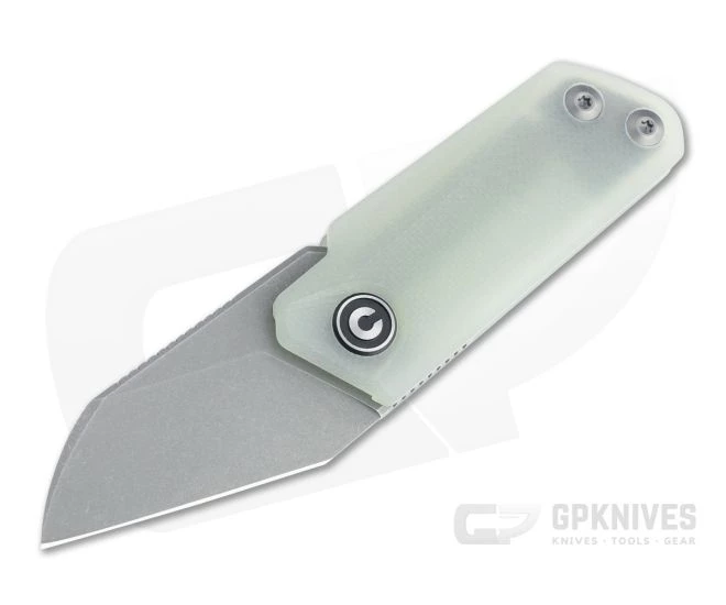 Designer Ostap Hel produces diverse designs with eye-catching aesthetics, superb ergonomics and innovative features. The CIVIVI Ki-V illustrates Hel’s style with a Kiridashi inspired design, detent slip joint construction and top flipper operation. A sub-2 inch blade and non-locking operation make this knife legal to carry nearly anywhere while being capable to handle a variety of daily cutting tasks with ease and efficiency. This version comes with a gray stonewashed 9Cr18MoV stainless steel blade and natural translucent “Jade” G10 handle scales.