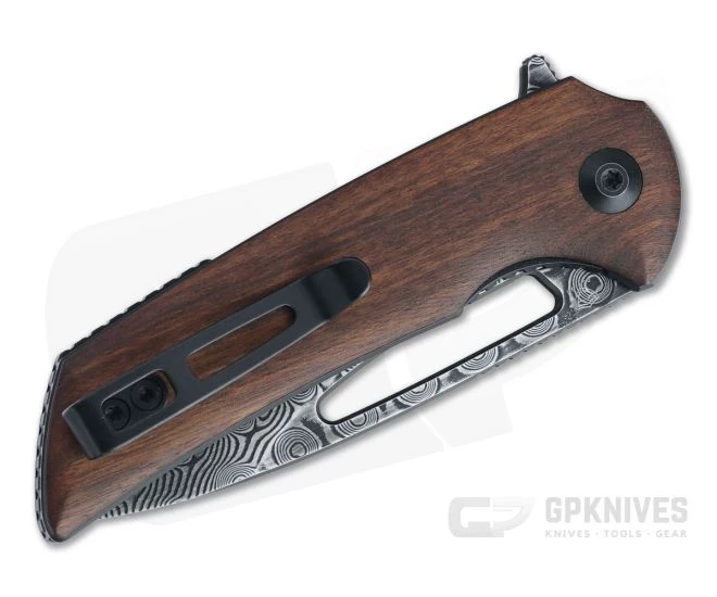 Handle: Chamfered black stainless steel liners are skeletonized for weight reduction and support handsome, fully contoured Cuibourtia Wood handle scales to deliver exceptional comfort and a warm, organic feel. An index finger cutout pairs with the tapering handle to deliver a secure grip even with the smooth scales. Scalloped for traction, the stainless steel liner lock mechanism delivers reliably smooth operation and rock solid lockup for secure use. Construction is completed with black stainless steel Torx hardware and a matching jimped G10 back spacer.