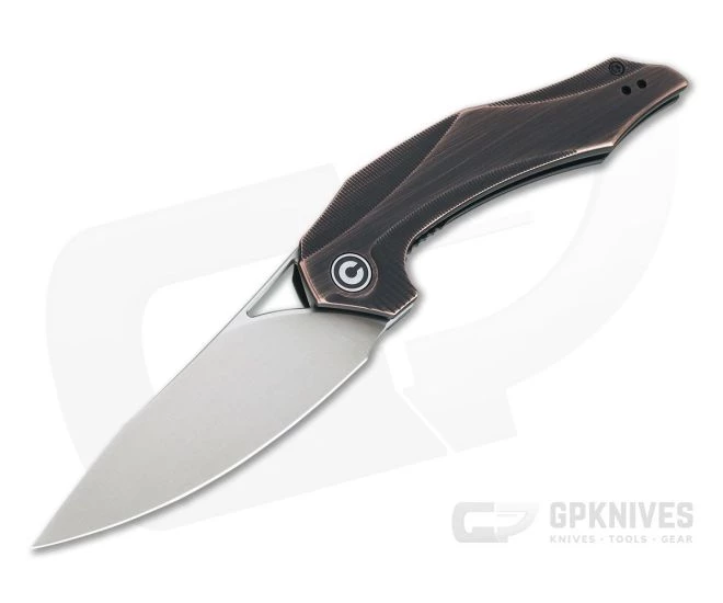 The CIVIVI Plethiros is the budget friendly EDC flipper designed by iconic custom designer Elijah Isham. The Plethiros delivers Isham’s iconic, eccentric style while providing a highly functional and utilitarian cutting tool. CIVIVI has executed the Plethiros in a robust yet refined construction. This version comes with Black Hand Rubbed Copper handle scales, black stainless steel liners and a satin finished, American 154cm stainless steel blade.