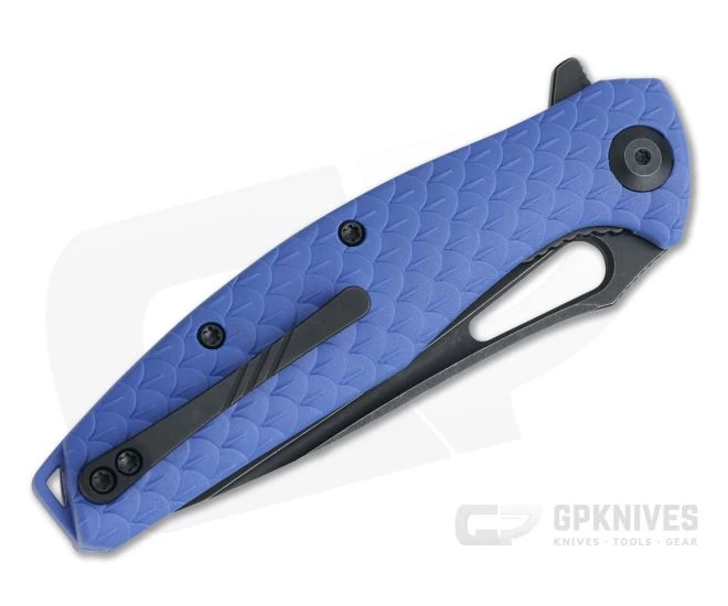 The CIVIVI C902 Wyvern is the budget friendly answer to the WE Knives Drakon, offering the same stunning visual appeal executed in more economic materials for a handsome knife that you can use without a second thought. As the name suggests this knife has dragon scale texturing on the ergonomic, streamlined handles for style and traction. This version comes with Blue FRN handles, black coated steel liners and a black stonewashed D2 Tool Steel blade.