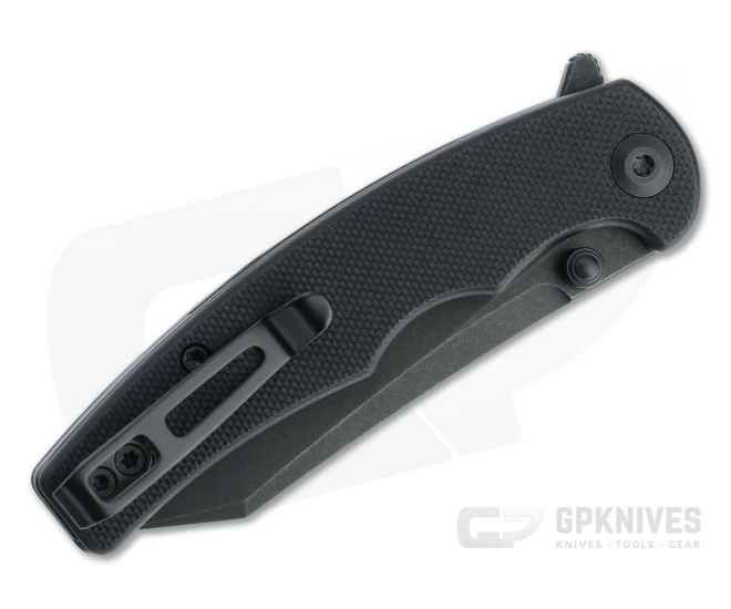 Handle: Black skeletonized stainless steel liners support flat peel-ply textured G10 scales joined by a partial back spacer forming a rock solid handle. The arched back and finger grooves provide a secure hold in both saber and pinch grips, good for fine work, while the liner lock delivers smooth operation and solid lockup for safe use.