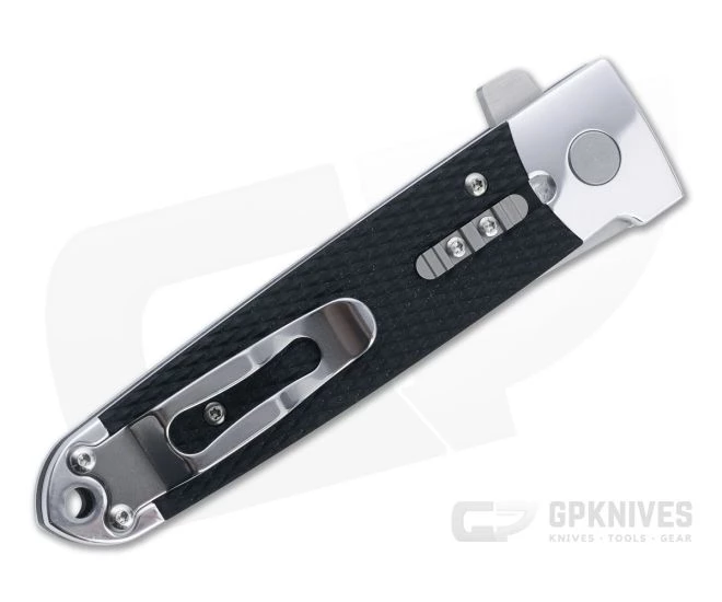 Handle: Durable and lightweight, two solid billets of mirror polished 6061 aluminum create the bolster, and frame, inlaid with checkered black G10 for a secure and comfortable grip. A stainless liner forms a strong leaf spring lock that is backed up by a slide safety for a lock that is extremely resistant to shock and impact while being easy to operate with one hand.