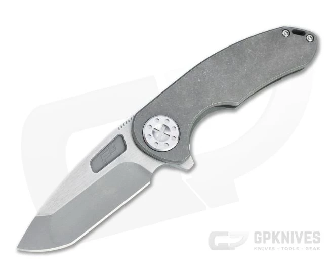 The F3 titanium frame lock folder is a cornerstone design from Curtiss Custom Knives and delivers hard use cutting performance with rugged aesthetics. Dual slabs of blasted and tumbled titanium house the hollow ground CTS-XHP blade riding smooth on bearings at the S.P.O.T. system pivot for smooth, reliable operation. This slim flipper version comes with a two-tone Spanto profile blade.