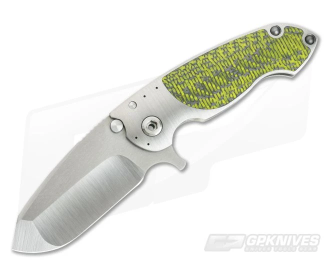 The Handle: Thick, satin finished titanium forms the framework for the SOLO and houses Yellow Kevlar Carbon Fiber inlays on both sides that reduce weight and elevate the look of this already stunning piece. The inlays for faux bolster areas on the handle melding the modern aesthetic with the classic. Comes standard with a robust, 3D machined titanium clip for tip-up, right hand carry. The integral frame lock mechanism is flawless in operation and offers unparalleled reliability. Construction is completed with Titanium spool standoffs and an oversize, chain ring bolt pivot.