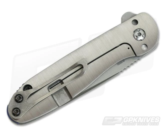The Handle: Thick and subtly contoured titanium is satin finished for a comfortable, ergonomic feel and elevated look. The front scale is enhanced with a Silver Lightning Strike Carbon Fiber inlay. The reverse is an integral frame lock mechanism that is flawless in operation and offers unparalleled reliability. Comes standard with a stonewash finished, 3D machined titanium clip for tip-up, right hand carry. Construction is completed with Blue anodized Titanium backspacer and custom pivot hardware.
