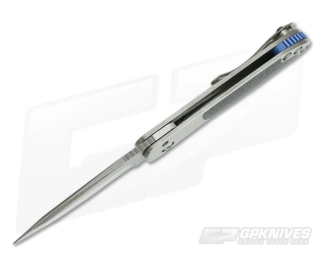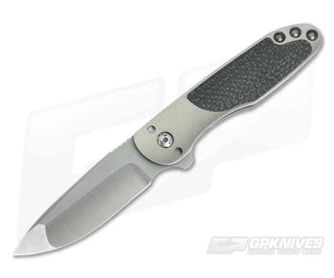 The Handle: Thick and subtly contoured titanium is satin finished for a comfortable, ergonomic feel and elevated look. The front scale is enhanced with a Silver Lightning Strike Carbon Fiber inlay. The reverse is an integral frame lock mechanism that is flawless in operation and offers unparalleled reliability. Comes standard with a stonewash finished, 3D machined titanium clip for tip-up, right hand carry. Construction is completed with Blue anodized Titanium backspacer and custom pivot hardware.