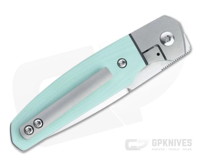 Handle: Modern tactical construction gets blended with a traditional design aesthetic in typical Pena fashion on the Caballero. A more compact, gentleman’s version of the Mula, the knife retains thick titanium liners and integral bolsters finished in a discreet matte gray. Supported by the liners are stunning polished Tiffany Blue G10 scales separated by black liners for a stylish look. A generous index choil and pommel taper give a secure grip while retaining a sleek look. Construction is titanium barrel spacers, hardware and inline lanyard pin. Simple, smooth and rock solid, the liner lock delivers secure lockup for safe use.