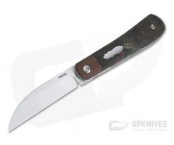 Blade:Â Executed in a traditional Wharncliffe pattern, the blade has a minimal top flipper tab that allows the knife to retain a traditional look and feel while offering one-handed deployment. The blade is made from premium, American CPM-154 stainless steel with a horizontal hand-rubbed satin finish and has a razor sharp edge and piercing point. It rides on caged stainless bearings for a smooth operation and has a strong detent for snappy deployment.