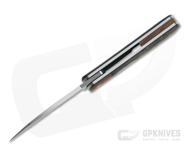 Enrique Pena is known for his remarkable fit and finish along with making knives that are peerless in both form and function. His knives often blend the modern and traditional and this Custom Swayback Top Flipper is a perfect example. This version comes with a hand rubbed satin finished, CPM-154 Wharncliffe blade and Rag Micarta handles with Natural canvas bolsters and black liners.