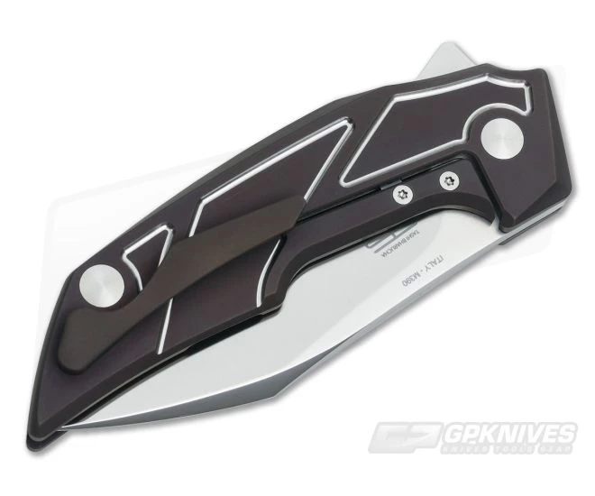 The Handle: The handles are made from brown anodized titanium that goes through a two-step manufacturing process to achieve the polished geometric mill work design. The handle scales and back spacer are nearly seamless in the fitting and are machined to form a continuous line giving the knife an almost Integral construction feel in the hand. A single position, right hand, tip-up, 3D machined pocket clip delivers secure carry.