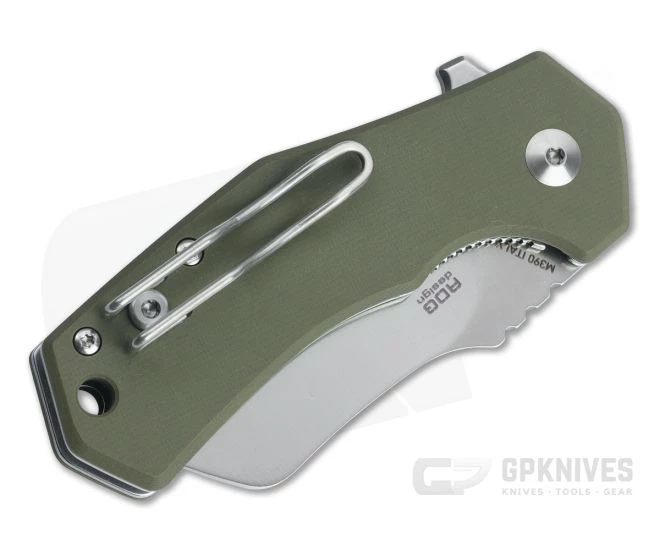 Handle:Â Stainless steel liners support OD Green G10 handle scales for rugged durability and a secure grip while one liner forms the reliable locking mechanism. A thumb scoop and pronounced index cutout make for a secure and comfortable grip and powerful leverage for heavy work. An open back construction makes for easy cleaning and maintenance while a generous hole is added for lanyard attachment.Â
