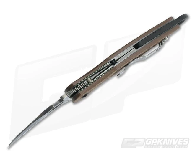 The Blade: Nearly three inches in length, this hawkbill-styled blade is shaped like a claw for digging in and slashing cuts. Built from a high grade Bohler stainless steel, given an upper swedge grind and finished with a worn-in tumbling. The 479 has three ways in which it can be deployed for the user’s convenience. It can be flipped open as it has a small integrated flipper tab on the back. There is a thumb hole window great for a gloved hand. Finally, the Emerson patented Wave Opening Feature can be utilized by catching it on a pocket on the way out for instant deployment. Smooth function with bronze washers at the pivot.
