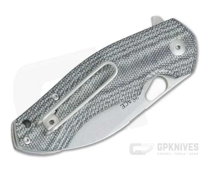 Inspired by the GM1, the ACE Biblio is a robust slicer built for daily carry in the woods or the city. With exceptional style and ergonomics this liner lock flipper offers a great performance oriented design that will look great wherever you carry it. This version comes with a stonewashed M390 blade and black canvas Micarta handle scales.