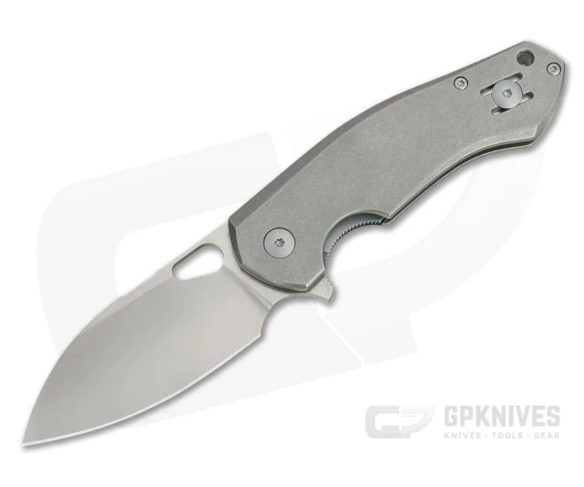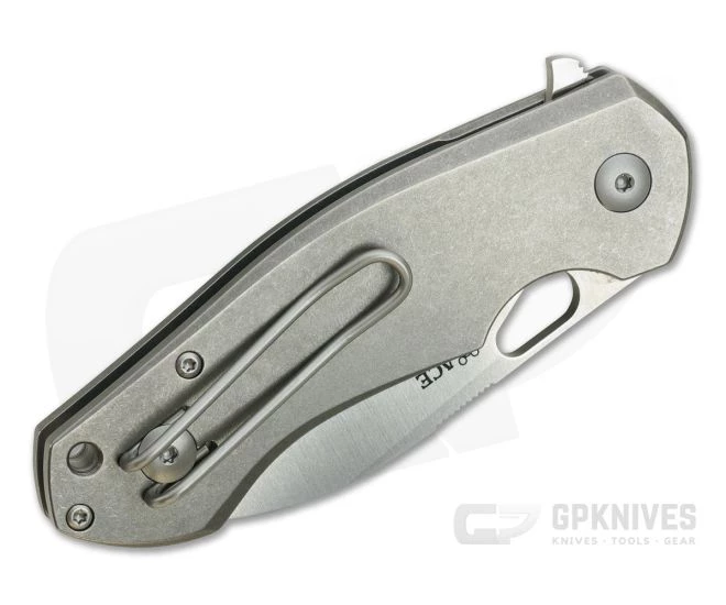 Handle:Â Solid titanium handle scales with a heavily stonewashed finish form a robust handle with chamfered edges for a comfortable, ergonomic grip. Flat sides slide easily in and out of the pocket while a single, nested hardened steel liner forms the locking mechanism providing smooth operation and solid, reliable lock up for safe use. Stainless steel barrel spacers create an easy to maintain, open back construction which is completed with stainless Torx hardware and a generous lanyard hole.