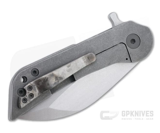 Custom maker Sam Jones A.K.A. Grindhouse Knives, delivers practical and utilitarian knives that are overbuilt like tanks for serious daily use. Industrial style, ergonomic comfort, and quality handmade production makes each Grindhouse knife a unique and capable cutting tool. The #3 KD flipper comes with a stonewashed CTS-XHP spear tip blade, tumbled machine finish titanium handle slabs, and a crystal titanium UNOB clip.