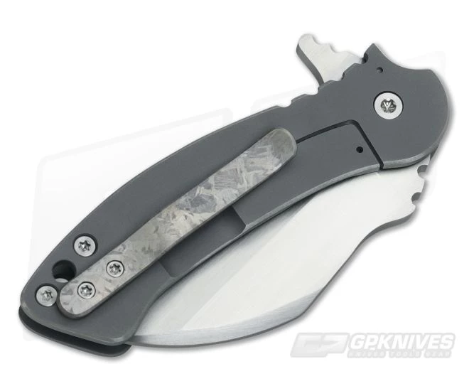 The Blade:Â .215 inch thick CTS XHP Carpenter Steel blade has a custom hand rubbed satin finish and blasted spine. It looks awesome in this sheepsfoot-wharny styled blade finished with a shaving sharp polished edge. An integral flipper tab works in conjunction with a ball bearings pivot system creating some silky smooth flipping action. The user can either work utilizing the flipper tab as a guard or choke up on a built in choil set just behind the cutting edge for finer tasks. From upper thumb ramp to scooped cut out, any grip should be comfortable.Â