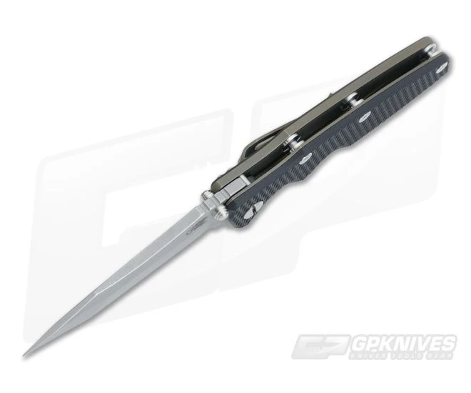 The Blade:Â 3.5 inch harpoon tanto-styled perfect for straight tactical and penetrating tasks. The Working Finish (heavy bead-blast and tumbling) on the 20CV is strong and should hide wear over time while also looking cool. It operates via two thumb studs or integral flipper tab on Rick’s own 17-4PH state-of-the-art pivot system creating clean, smooth function over the life of the knife. Flipping action is quite easy and smooth, however a bit of wrist action may be required. An upper swedged harpoon point really sets this blade off and about a half an inch of jimping on the spine makes the perfect thumb rest.