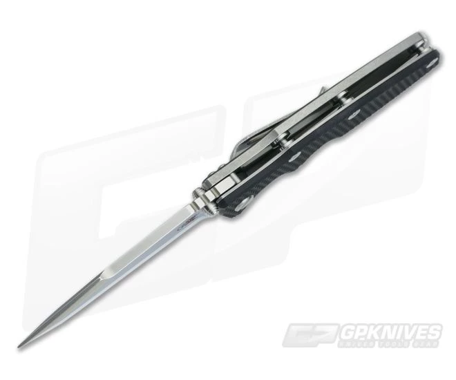 The Blade: 3.5 inch Harpoon Spanto is perfect for tactical, piercing tasks while still being very utilitarian. The bright Stonewash Finish on the 20CV is rugged and will hide wear over time while maintaining an attractive look. It operates via two thumb studs or integral flipper tab on Rick’s own 17-4PH state-of-the-art pivot system creating clean, smooth function over the life of the knife. Flipping action is quite easy and smooth. The upper harpoon swedge really sets this blade apart and a section of jimping on the spine makes the perfect thumb rest.