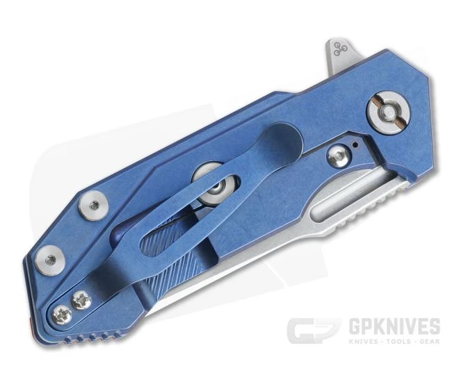 This version has a stonewashed, Slicer Grind, 20CV blade, Orange G10 front scale and stonewashed Blue titanium frame.