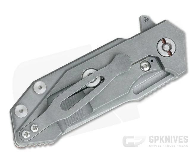 This version has a blasted and tumbled “Working Finish”, Slicer Grind, 20CV blade, Orange/Black layered G10 front scale and matching Working Finish titanium frame.