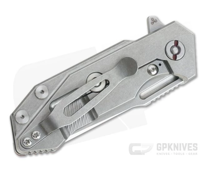 Blade:Â Coming in at just over 2 3/4″ the Half Track has plenty of cutting edge for all your EDC tasks. A Slicer grind profile lives up to its name and with the high wear resistance of 20CV you’ll get a lot of mileage even against highly abrasive materials. This Half Track features a rugged stonewashed finish on the blade that looks great and hides wear from use. The jimped thumb ramp and finger choil deliver optimal control while dual fullers enhance the aesthetics. Internal blade stops create a clean design. The installed bearings of the Tri-Way pivot make for fast, smooth, flipper deployment and can be customized based on user preference.