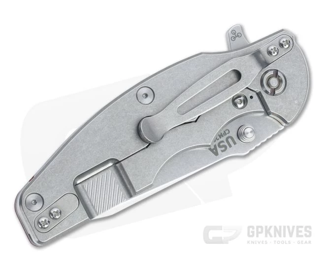Blade:Â The 20CV spear point blade has enough belly to tackle everyday tasks while being robust enough for heavy field work. It comes with a rugged stonewashed finish that hides wear from use while looks great. Deployment is fast and smooth thanks to the innovative, user-customizable Tri-Way pivot system bearings (installed) via the dual thumb studs or flipper tab. A raised thumb ramp with comfortable jimping enhances control and power when utilized for heavy cutting.