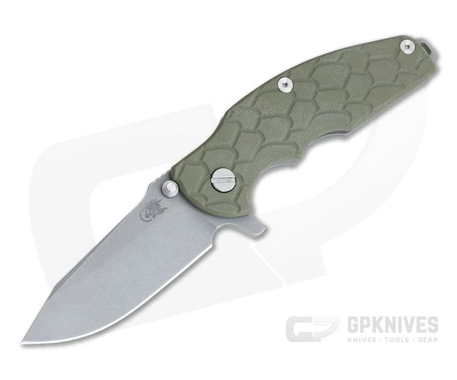The Jurassic flipper from Rick Hinderer Knives has all the curves and humps of something you might find from the Mesozoic Era, but fits right in with its 21st Century brethren. Rick outfitted this model with a nice wide spear point blade sporting a reinforced high height saber grind which pairs well with the humpbacked handle built on the typical, hard-use Hinderer frame lock construction with G10 front scale. This version comes with a Working Finish S35VN blade and frame and Reptile “Scaled” OD Green G10 front scale.