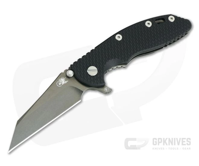The Hinderer Knives XM-18 3.5″ Fatty Wharncliffe is a precision-crafted hard-use tactical folder. Nearly identical to the regularly produced XM-18, the Fatty version has a beefed up blade measuring in at 0.185″ thick. Â Overall handle thickness and weight has also increased slightly to provide a palm filling grip of this muscled up beast. This version comes with a Stonewashed Black DLC 20CV Fatty Wharncliffe blade, matching titanium frame lock and Black G10 scale.