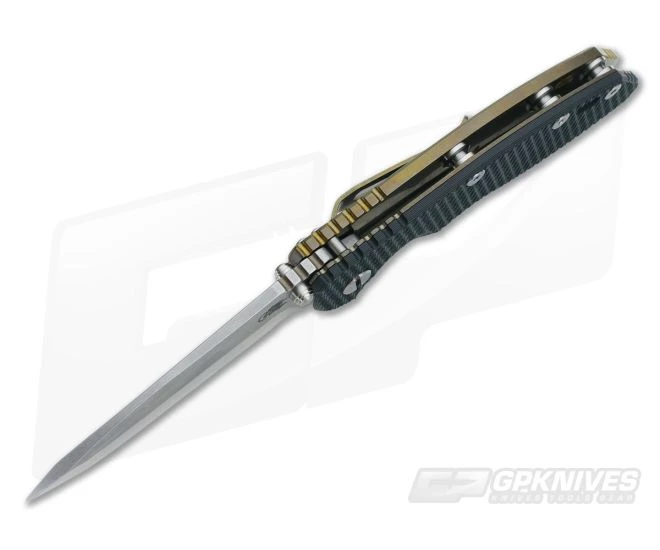 The Blade: The three and a half inch blade has a durable stonewashed broken-in finish and can be opened via the integral flipper or dual thumb studs/blade stops. Rick’s own 17-4PH state-of-the-art pivot system creates silky smooth operation; however, a bit of wrist action may be needed for flipping as Hinderers often have a light detent.