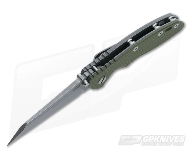 The Hinderer Knives XM-18 3.5″ Fatty Wharncliffe Blade with OD Green 3D textured G10 is a precision-crafted hard-use tactical folder. Â Nearly identical to the regularly produced XM-18, the Fatty version has a beefed up blade measuring in at 0.185″ thick. Â Overall handle thickness and weight has also increased slightly to provide a palm filling grip of this muscled up beast. Brand new directly from the Hinderer Ranch.