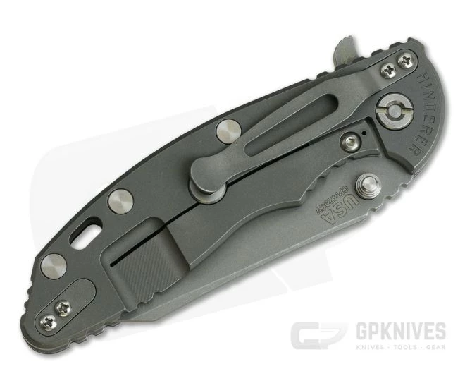 Tri-Way Pivot:Â The newest innovation from Rick Hinderer, the Tri-Way pivot features milled pockets in the blade and frame allowing for the use of ball bearing pivot washers (installed) or, utilizing steel spacers to fill those pockets, you can use either of the included sets of nylon or bronze washers to customize the action and operation of your knife.